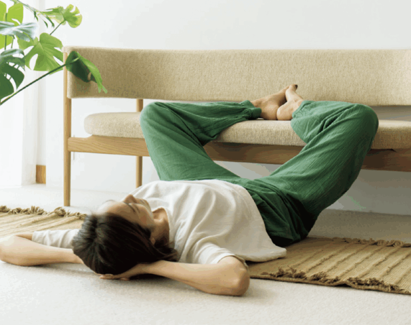 ソファやベッドにふくらはぎを乗せ、脚を心臓よりも高い位置に。