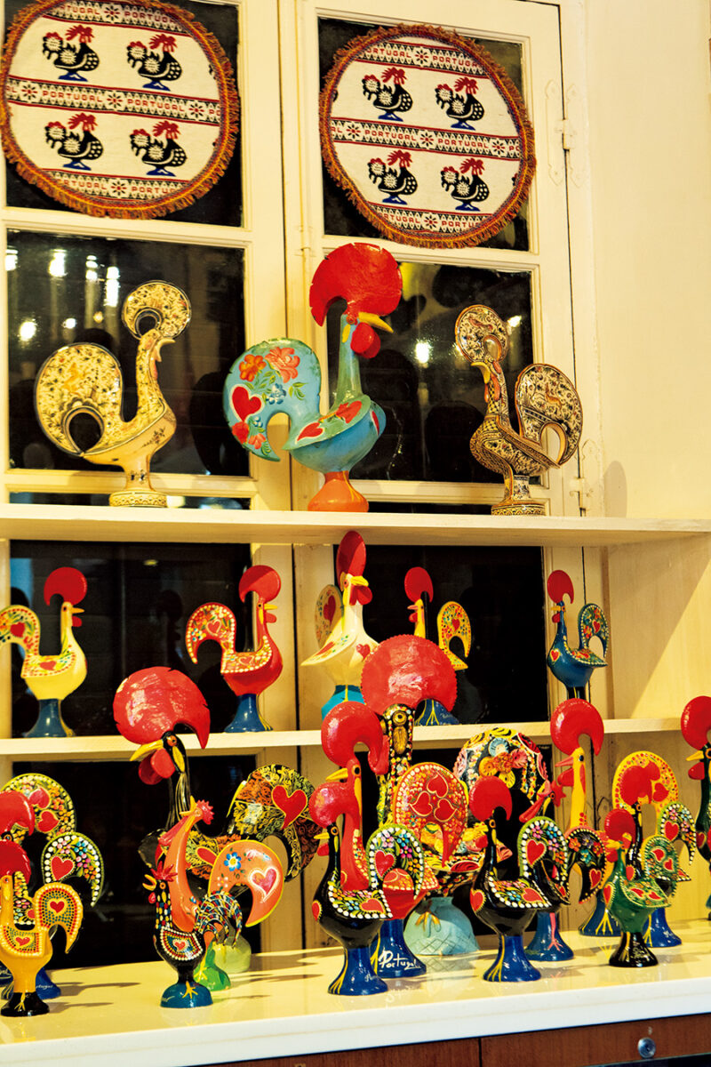 ラザロ地区の中心部に佇む築100年超の建物を活用。店内には、ポルトガルに伝わる幸運のシンボル「ガロ(雄鶏)」の置物が並ぶ。