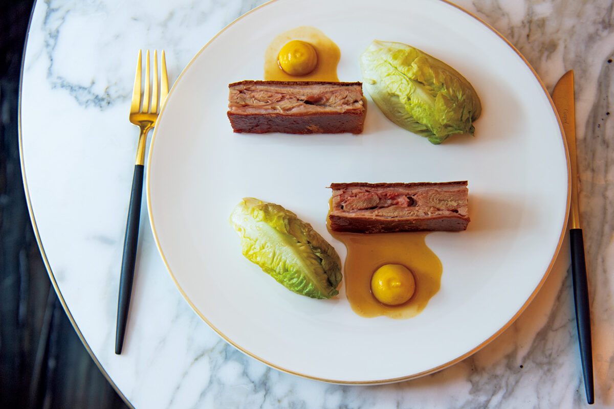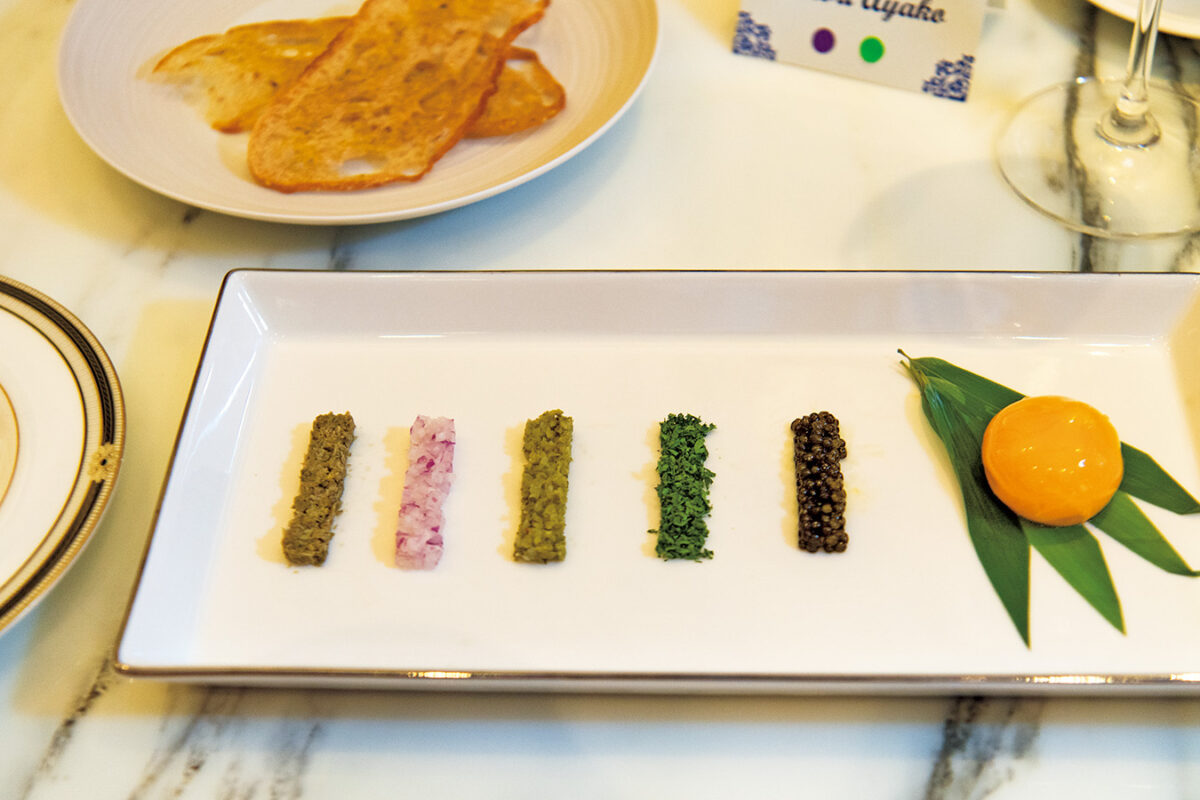 卵黄やキャビア、ピクルスなどを自由に合わせて楽しむ一皿。※掲載メニューはすべて取材時のもの
