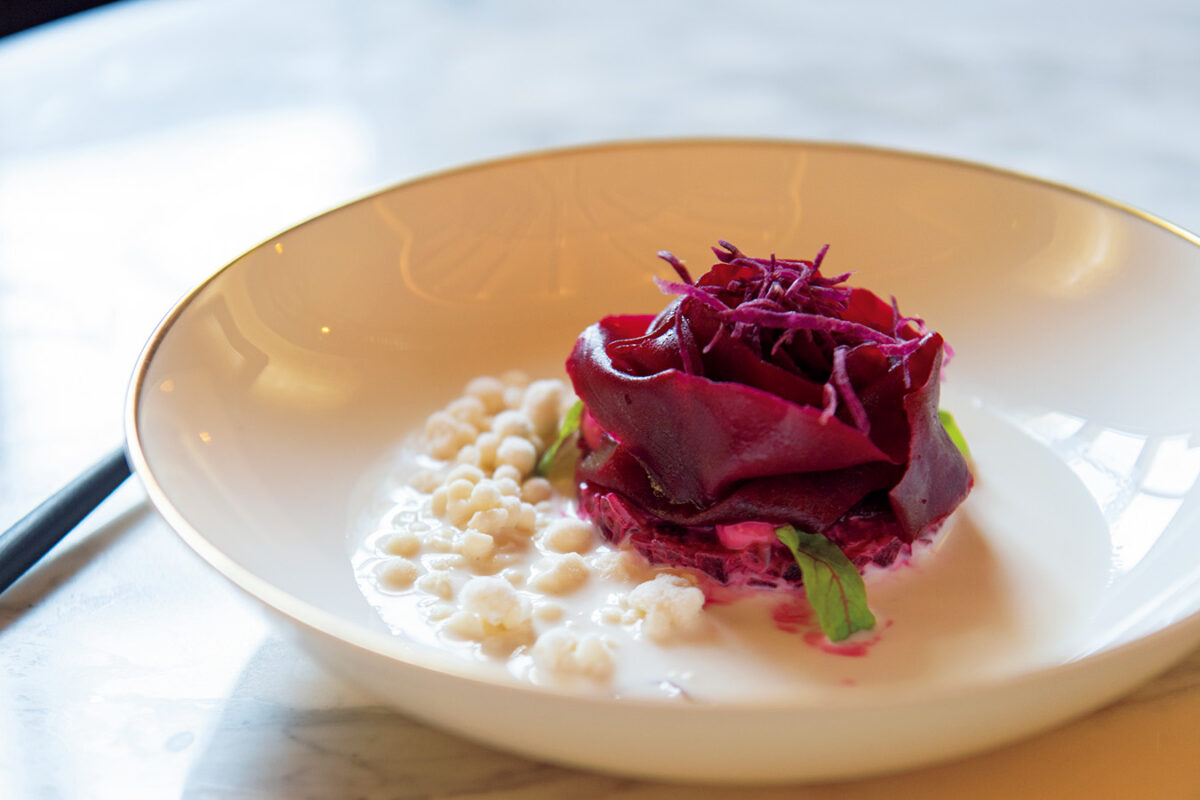 マスタードとパインナッツミルクを使ったビーツのタルタル158 MOP。