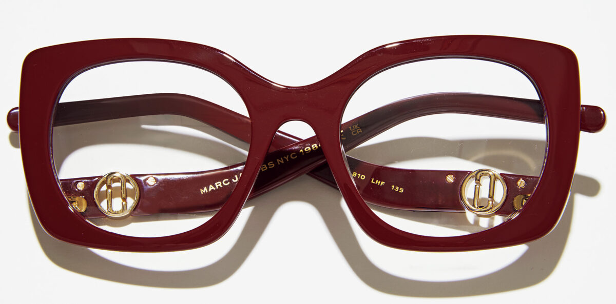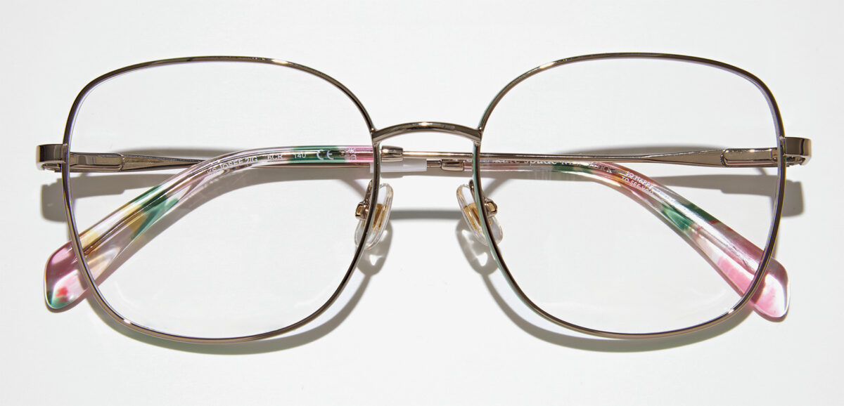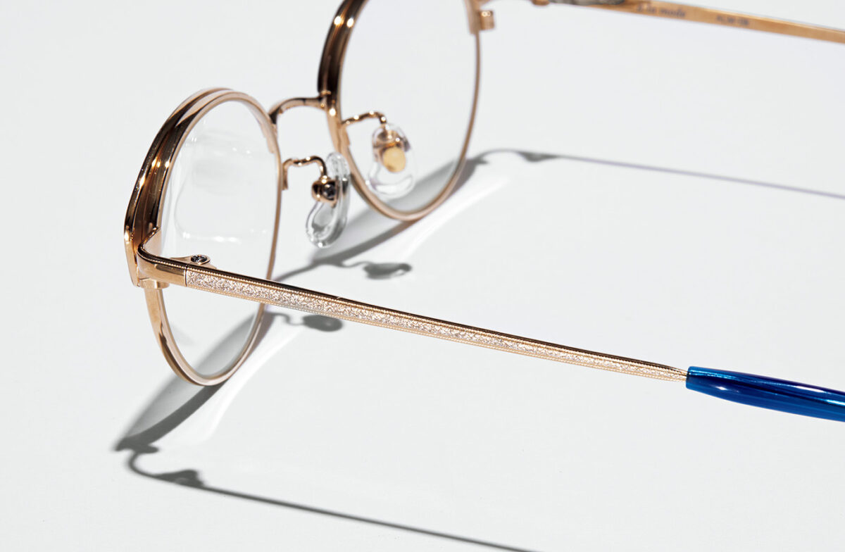 テンプルがフレームの下のほうに付いていて、かけると顔がリフトアップして見えるのも◎。