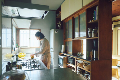 料理研究家・グラフィックデザイナーとして活躍する飯塚有紀子さん。築70年の実家の2階をリノベーションした飯塚さんのキッチンには、家族の記憶と、機能美への工夫がつまっています。