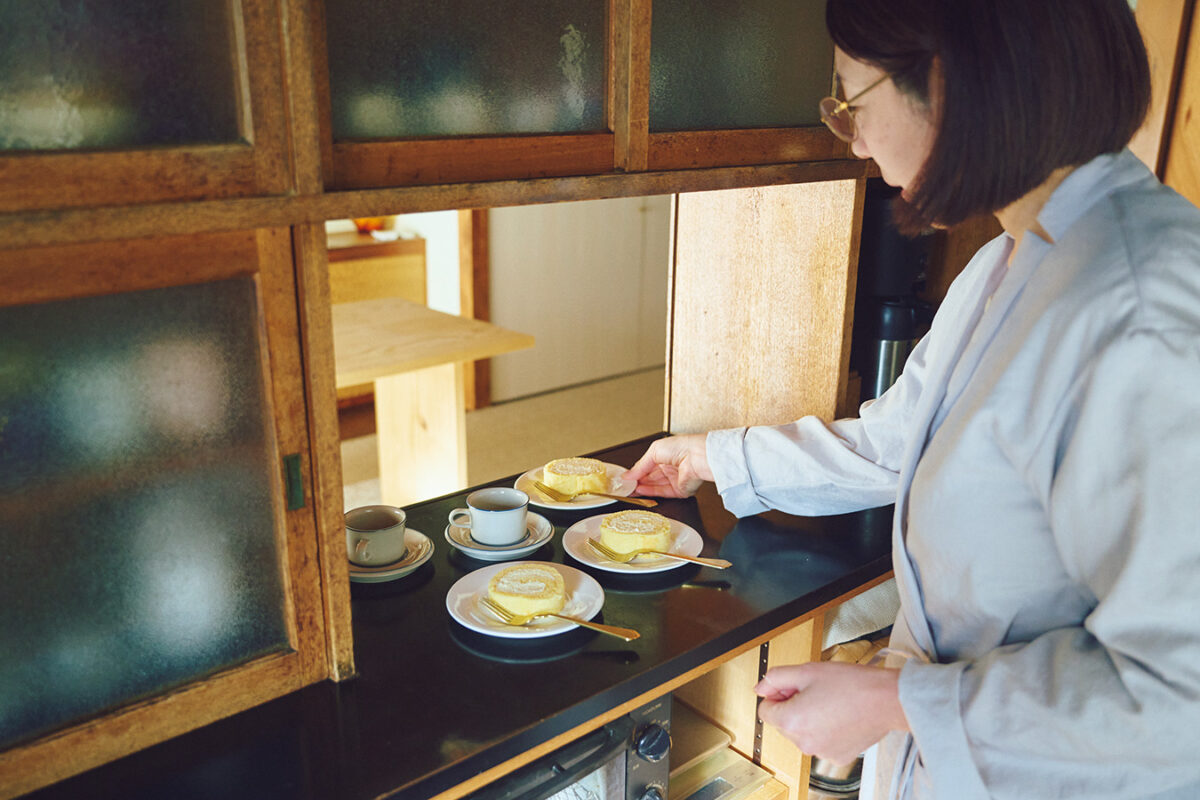 食器棚のオープンになっている部分は、ちょっとしたカウンターとして利用するのにちょうどいい高さ。