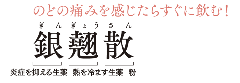 寒気のある風邪に効く「葛根湯」に対し、のどの痛みから始まる風邪の症状に作用する「銀翹散」。