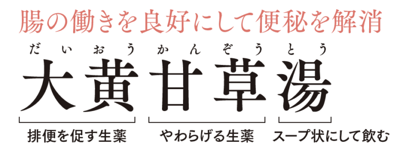 大黄と甘草の2つの生薬のみで構成されている「大黄甘草湯」。大黄によって大腸を刺激してぜん動運動を高め、排便を促す作用をもたらします。