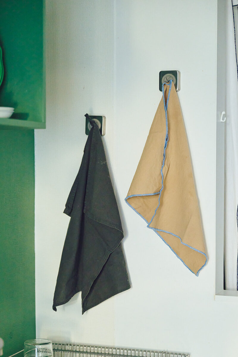 タオルホルダーをシンク横の壁に取り付けて。