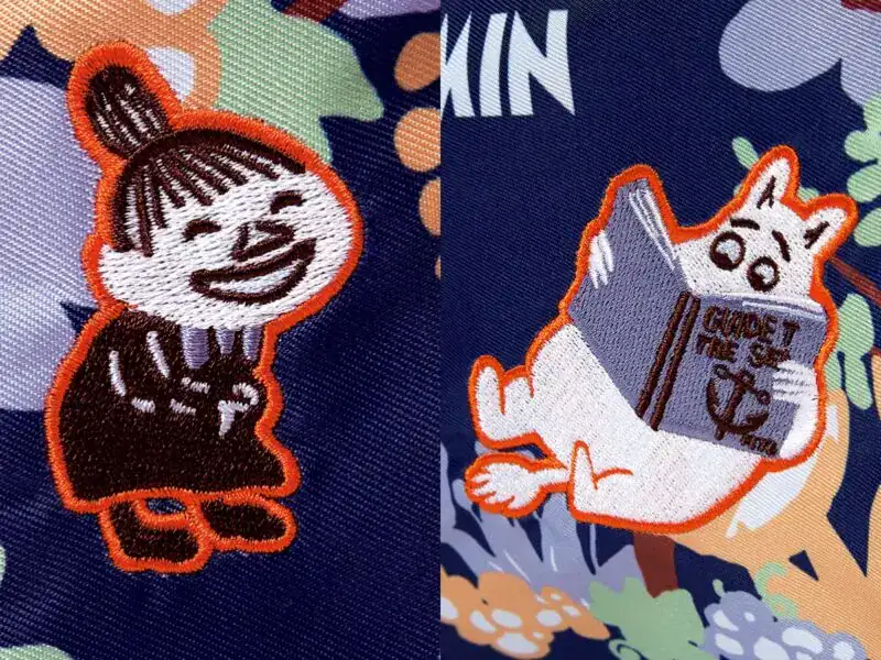 クラフト感のある刺しゅうや、ネイビーの地色にニュアンスカラーのプリントが、大人の女性にも持ちやすいポイントです。