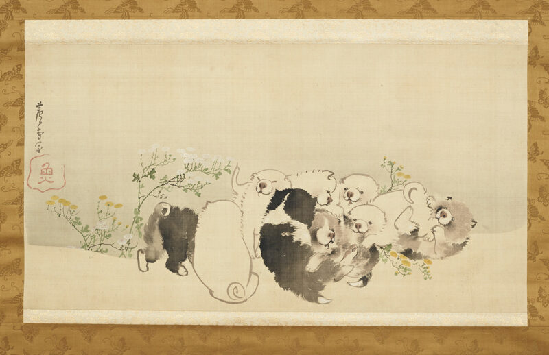 捉えた子犬の姿や仕草を取り入れ、「応挙犬」のスタイルを確立しました。