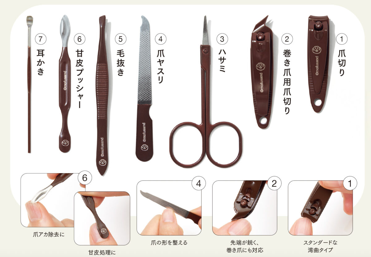 爪切りは2タイプをそろえた充実の7点セット。