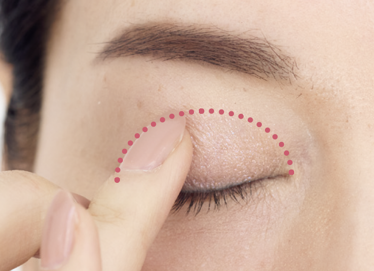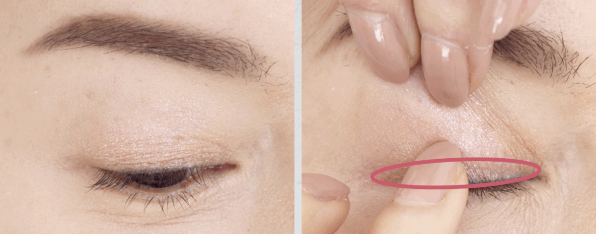 際が濃くなることで、単色アイシャドウでも引き締め&立体感が作れる。