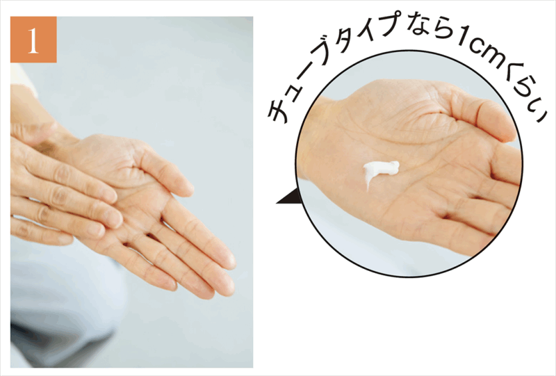 手のひら全体に伸ばし、水分が飛ぶまでしっかりすり合わせる。