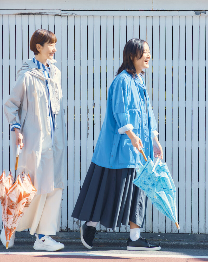 防水・撥水機能がある薄手アウターや、通気性のいい長袖シャツなどを上手に使って。