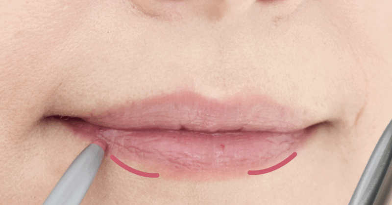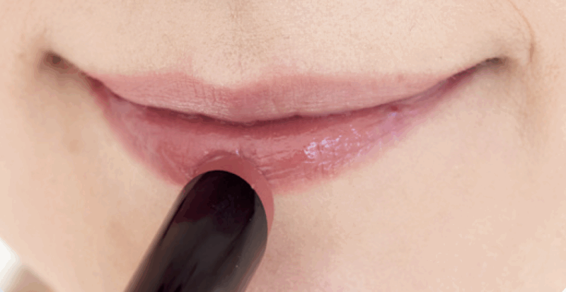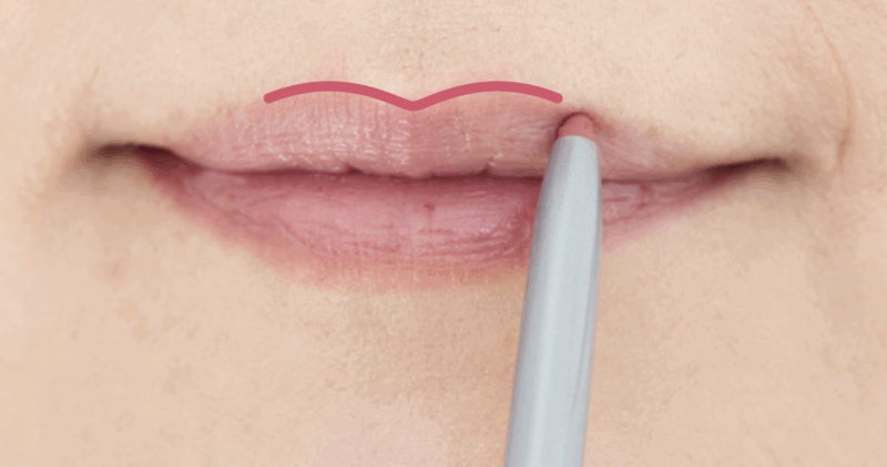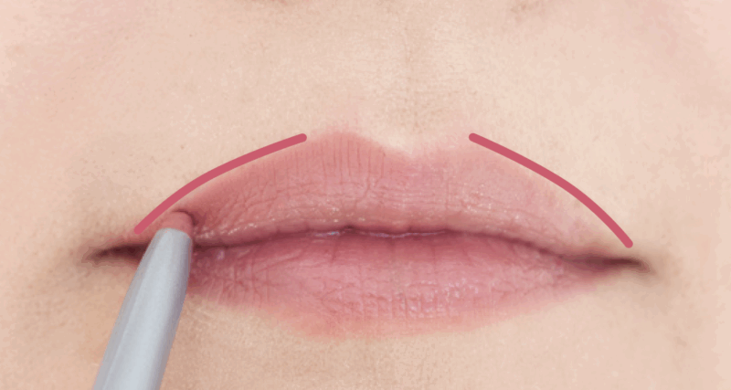 上唇の山をなだらかに描き、左右の口角まで丸みを意識してつなげる。