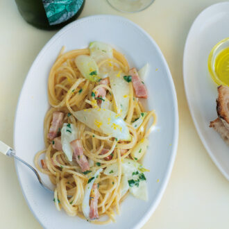 新玉ねぎとベーコンのレモンクリームパスタ