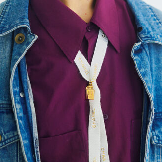 衿裏と袖口に刺しゅうがあり、衿を立てて着たときのワンポイントになるのがおしゃれ。