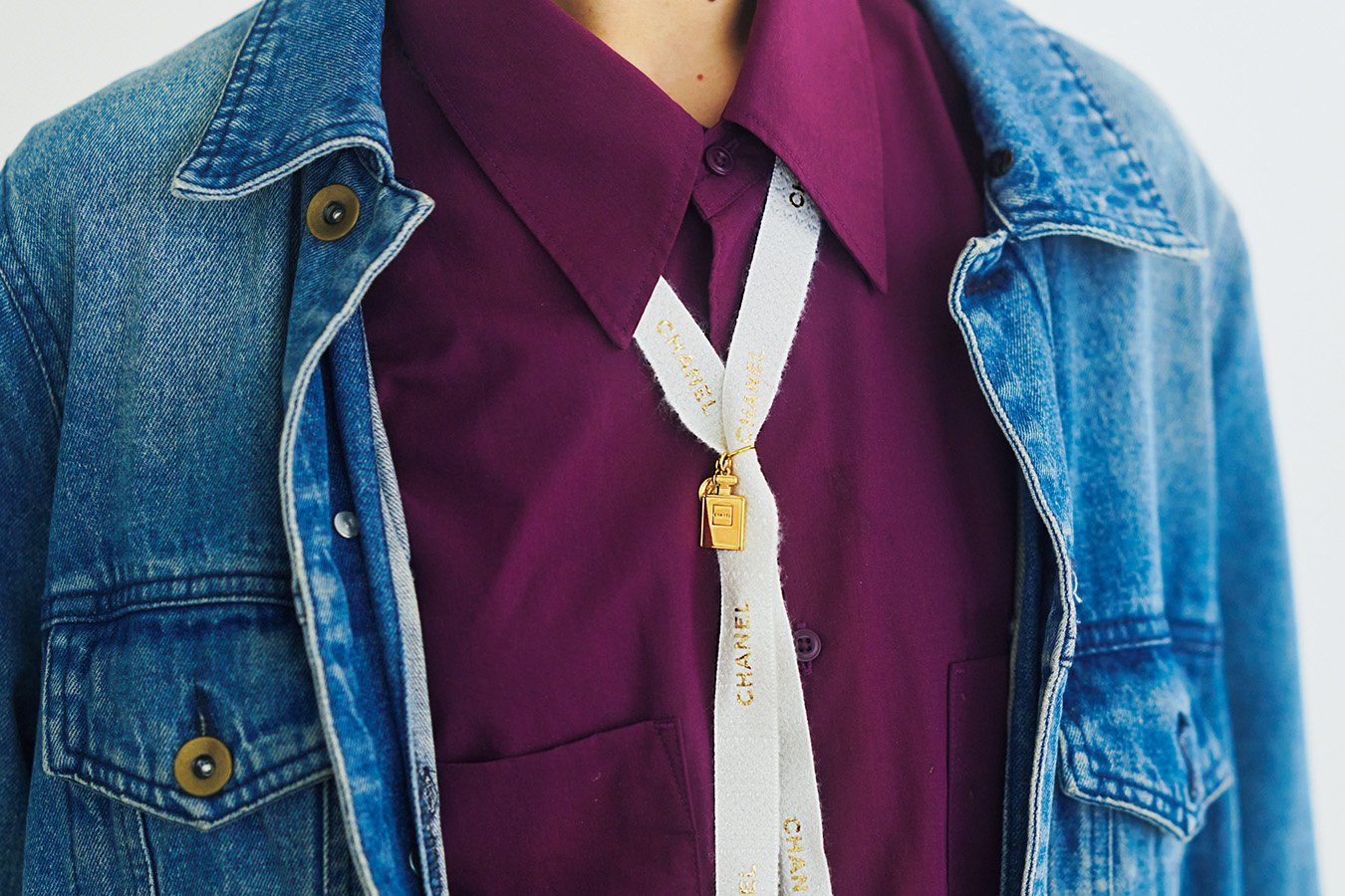 シャツ/ユニクロ、パンツ/無印良品、デニムジャケット/リサイクルショップで購入、バッグ/メゾン マルジェラ、シューズ/ロエベ
