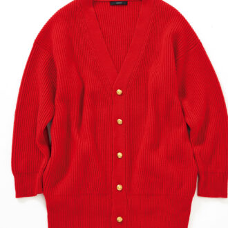 ジャケット¥39,600 /バスコ、カーディガン¥49,500 /エンダレンス、ベスト¥49,500 /ヤエカ カンバス デザイン(ヤエカ)、シャツ¥27,500 /ヤエカ(ヤエカ アパートメント ストア)、スカーフ¥22,000 /マニプリ、デニムパンツ¥20,900 /マリン フランセーズ(マリン フランセーズ代官山店)、バッグ¥11,000 /ベレット(セムインターナショナル)、ローファー¥47,300 /カステラーノ(フラッパーズ)