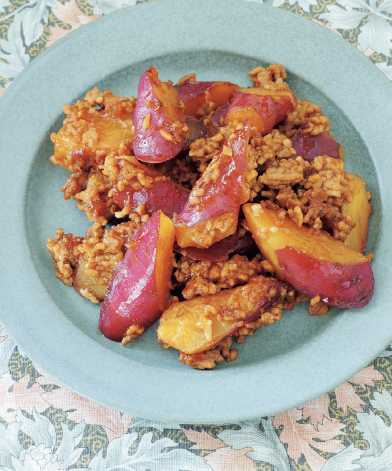 色が変わってきたらさつまいも、Aを入れ、ふたをして10 分加熱する。 -