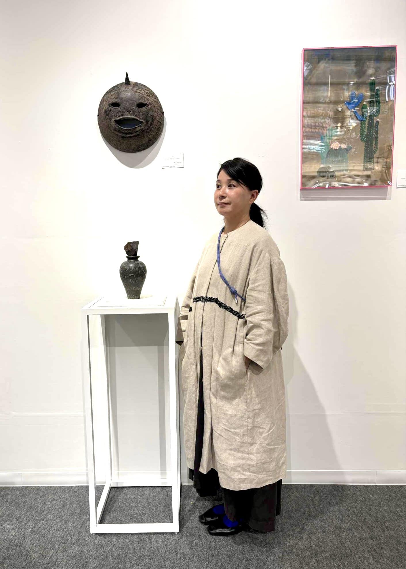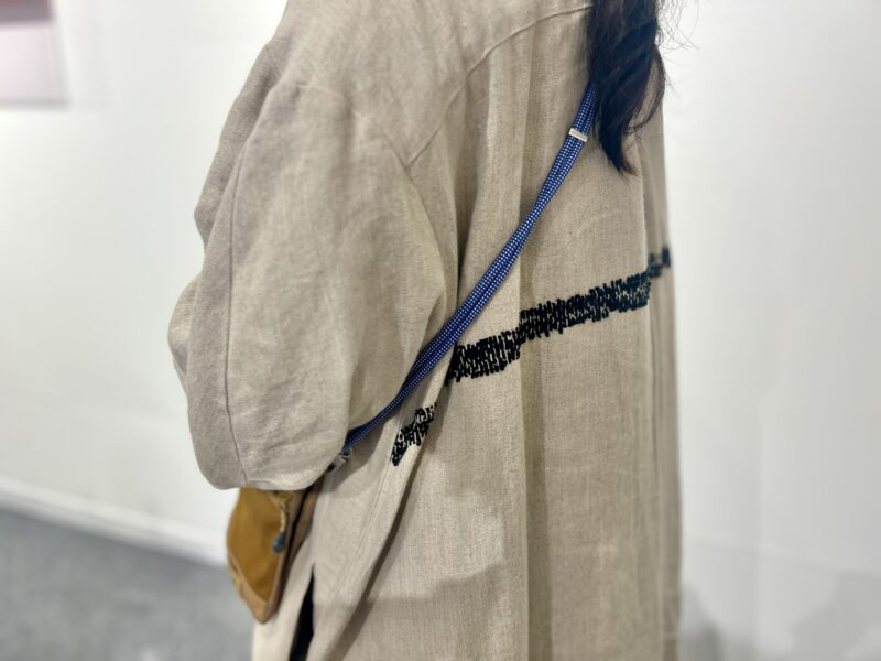 大阪・大丸心斎橋店の「MITTACA」ポップアップで、美術家のミヤケマイさんをキャッチ!「コムデギャルソン」のたっぷりとしたマキシ丈のワンピースに、リネンのアウターは「support surface(サポートサーフェス)」。ヨーロッパの雰囲気をたたえつつも日本人デザイナーが手掛けるブランドは、どこかミヤケさんの作品にも通じているようで、ナチュラルながら気品のある着こなしに。