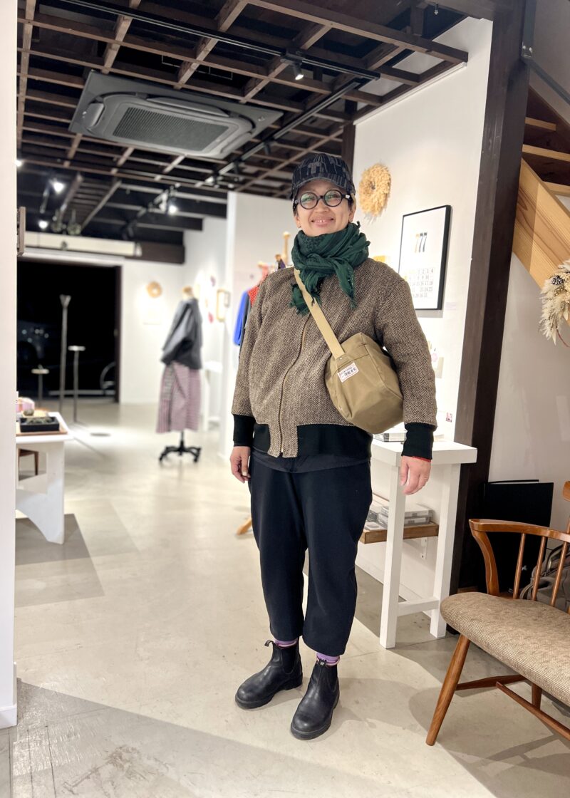 【関西スナップ】「SOU・SOU」の大判ストールが主役の個性派パンツスタイル