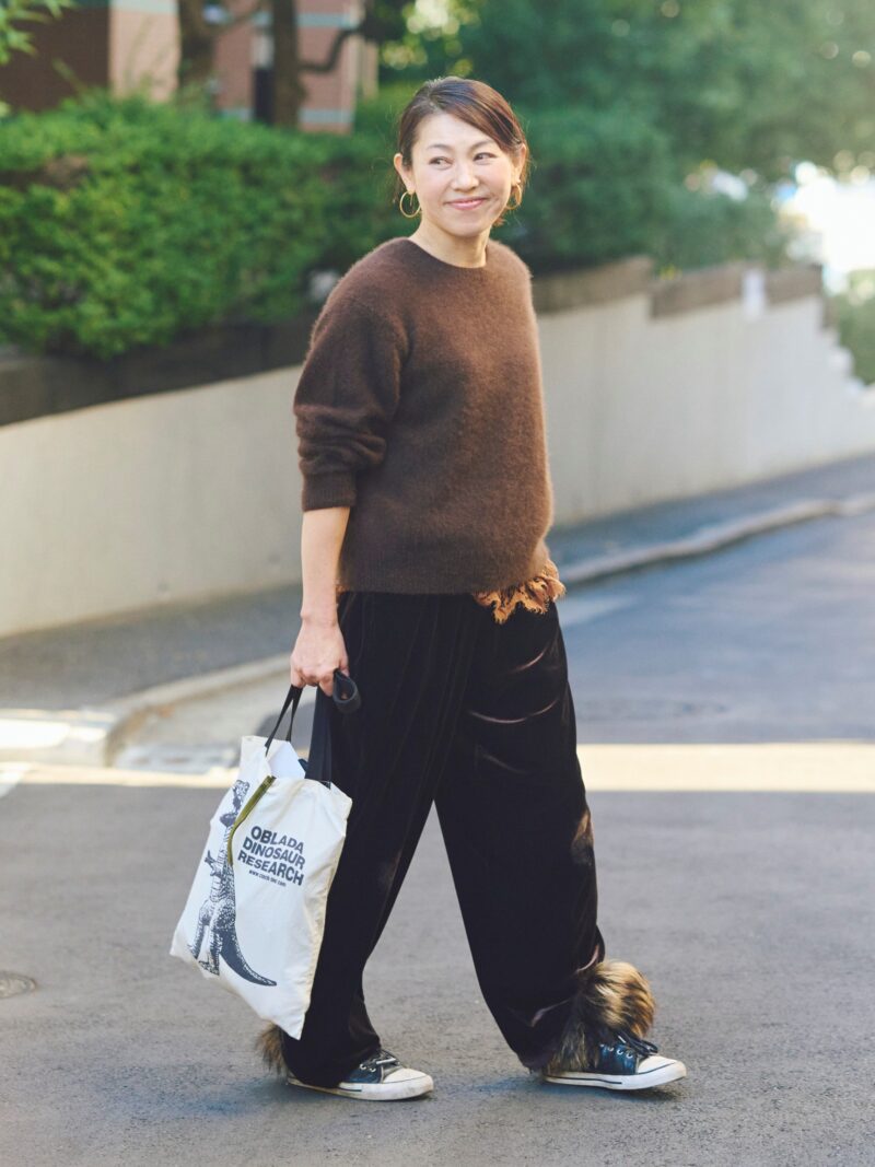 【スナップ】異素材ミックスでおしゃれをアップグレード! 50代のお手本「ブラウンコーデ」