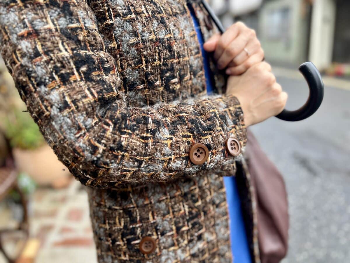 「去年のクリスマスプレゼントにいただいた、フランスの古着です」というコート。ボタンやデザインのクラシック感が、YSさんの雰囲気にとってもお似合い。ワンピースとの丈感も決まってます。