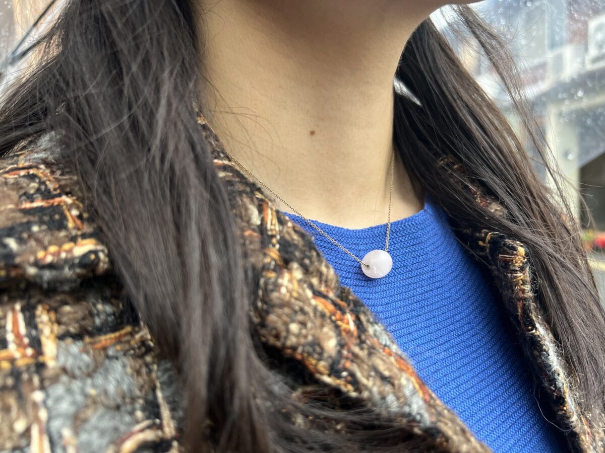 【スナップ】50代のモノトーンコーデは小物使いで差がつく! ヘビロテ中の天然石ネックレスがお守り代わり