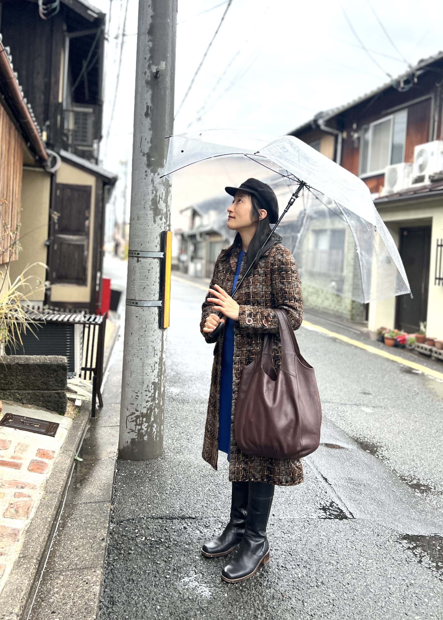 ざっくりした風合いのコートに、キャスケットとロングブーツ。シックなパリジェンヌ風のスタイルがおしゃれなYSさん。「よく考えると、今日身につけているアイテムは全て、譲っていただいたりプレゼントでいただいたものばかりです」。着物も好きで、古いものを大切にするYSさんだからこそ、周りの人たちも自分の大切なものを譲りたくなるのかもしれません。
