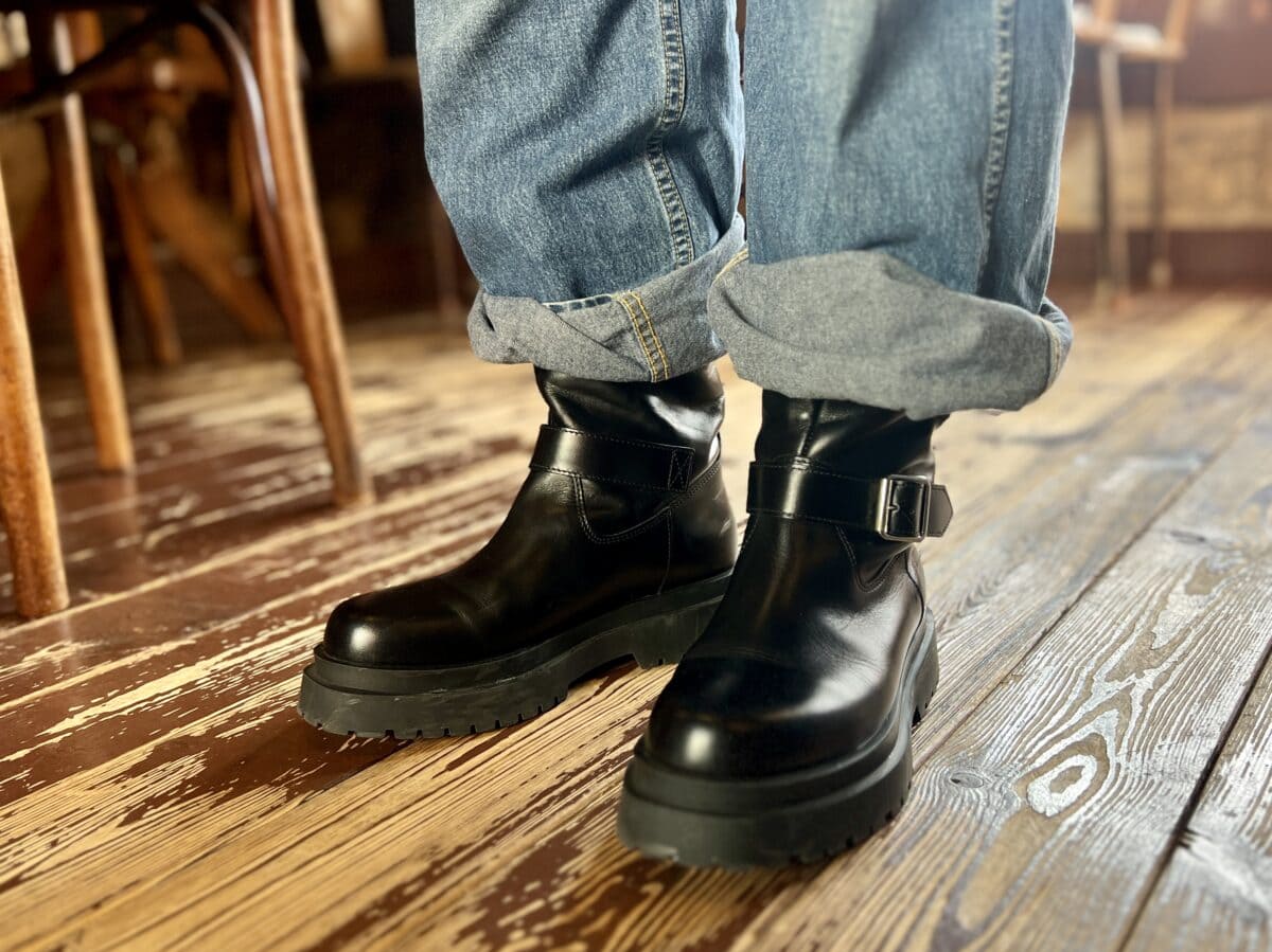 ラフにロールアップしたデニムの足元。「ゴツめのソールが気に入っている」というエンジニアブーツは「PELLICO SUNNY(ペリーコ サニー)」。