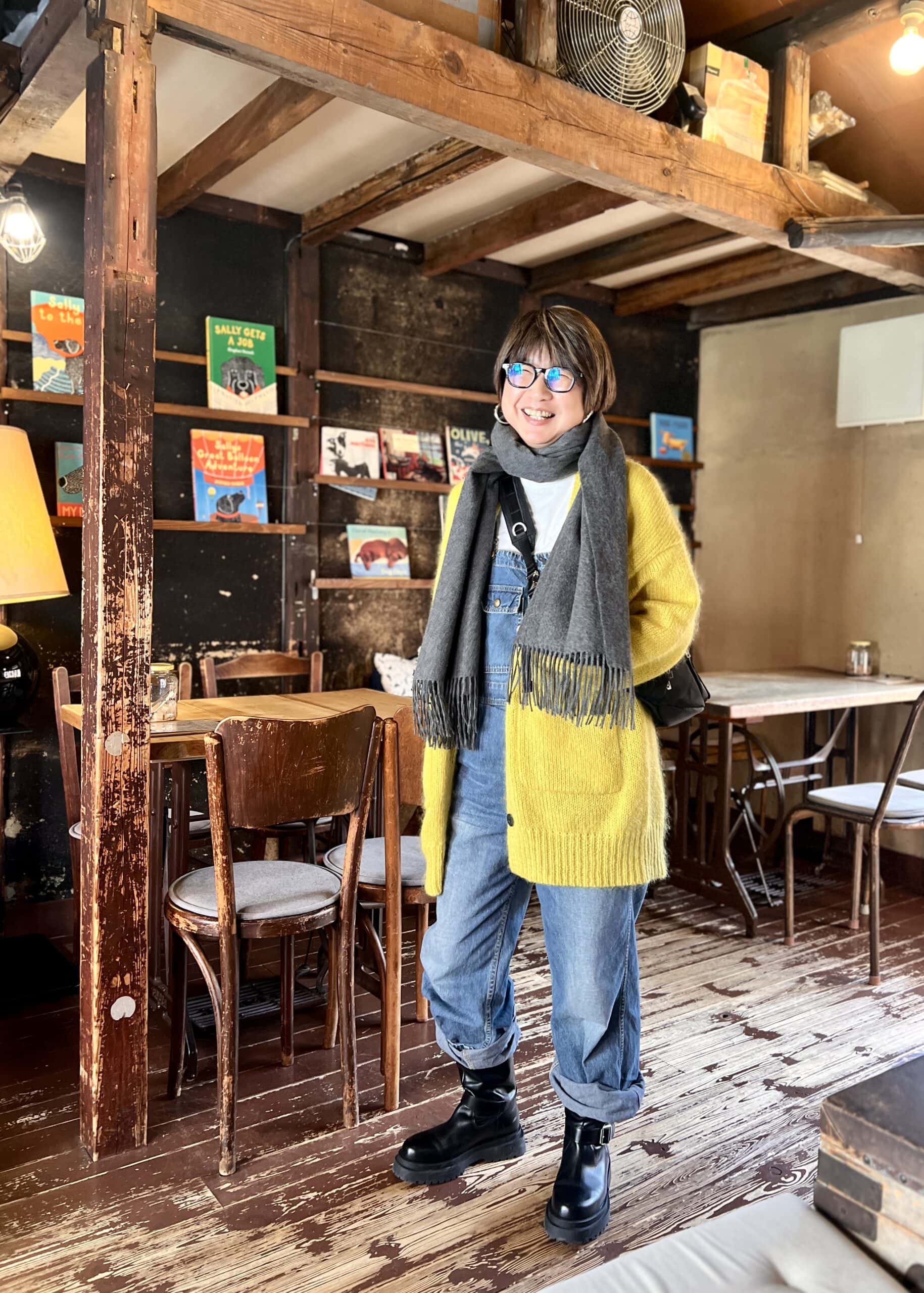 【京都スナップ】きれい色ニット×デニムで作る50代のラフスタイル