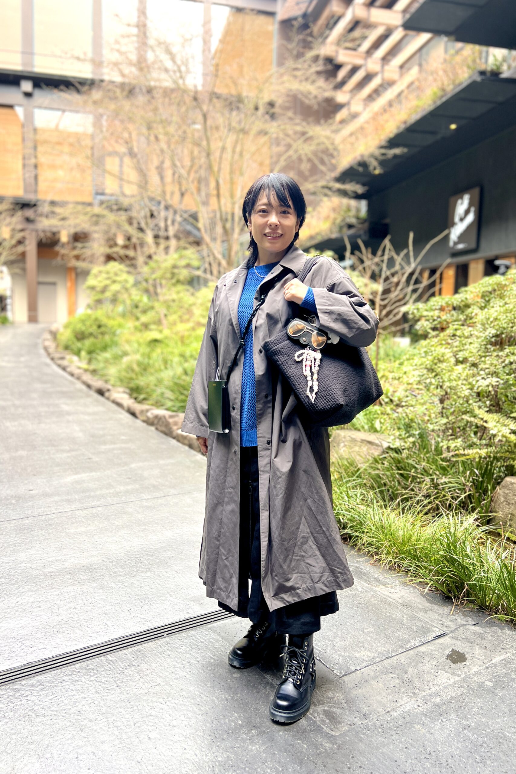 【京都スナップ】挿し色ブルーと小物使いに技あり! 「ドクターマーチン」で仕上げる大人の甘辛ミックスコーデ