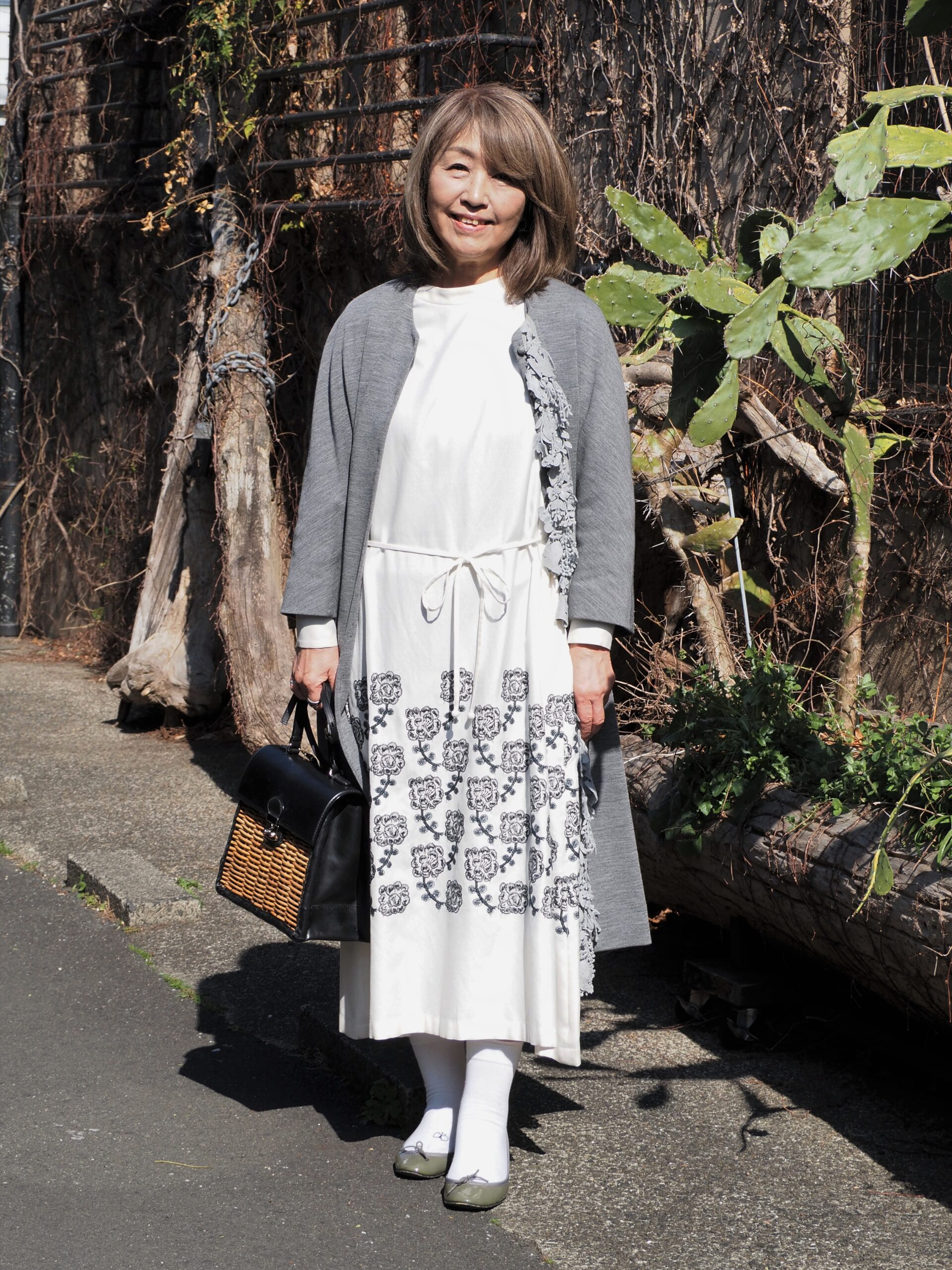 【スナップ】「ミナ ペルホネン」の刺しゅうワンピ&かごバッグが好相性♡春爛漫コーデ