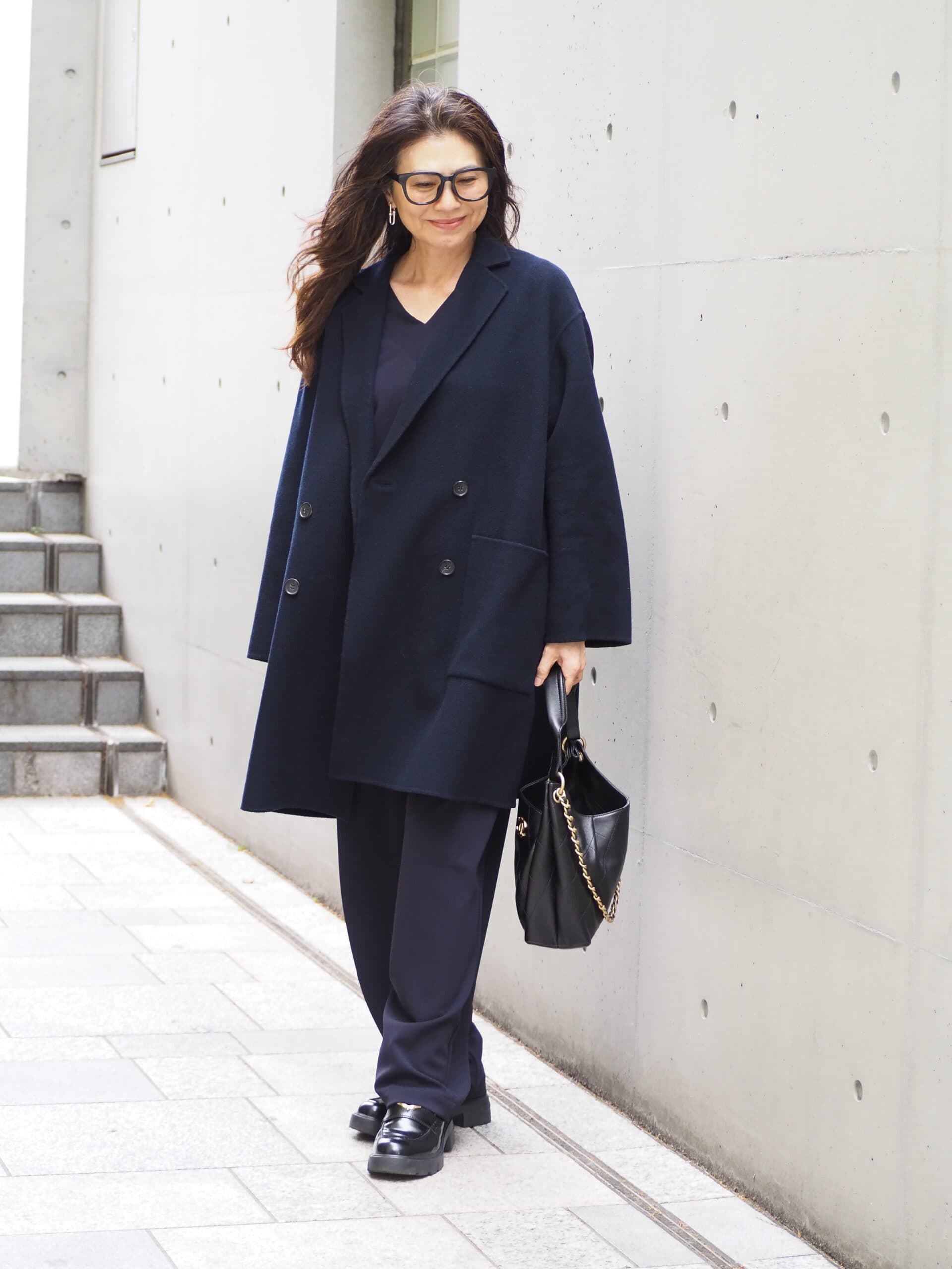 【スナップ】50代のおしゃれの悩みはヘアチェンジで解決? 大人の品格を上げるネイビー×ブラックの正解コーデ